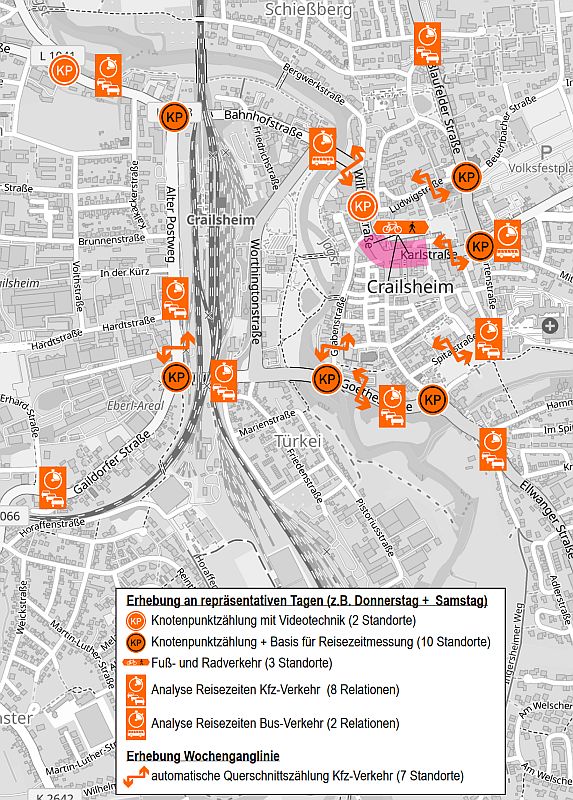 Um die Attraktivität der Innenstadt zu erhöhen, wurden seitens der Stadt Crailsheim bereits seit längerer Zeit Maßnahmen zur Verkehrsberuhigung bzw. zur verträglicheren Abwicklung des Kfz-Verkehrs wie Einbahnstraßenregelungen, Straßennetzergänzungen, Ertüchtigung bestehender Kreuzungen, aber auch die Sperrung einzelner Straßenabschnitte diskutiert.